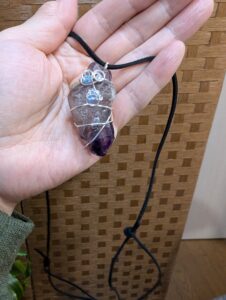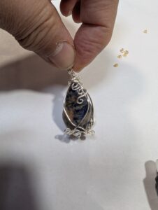 次に興味を示されたのがタンブルと言って穴のないパワーストーンをワイヤーを巻き付けて、ペンダントトップに仕上げました。